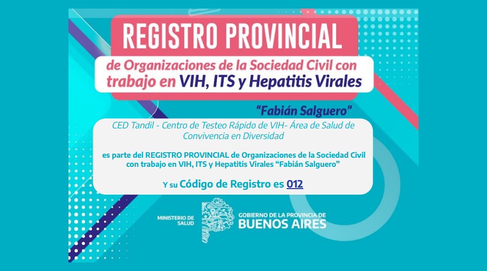 El Centro de Testeo Rápido de VIH de Tandil fue incorporado al Registro Provincial de Organizaciones de la Sociedad Civil con trabajo en VIH, ITS y Hepatitis Virales «Fabián Salguero«.