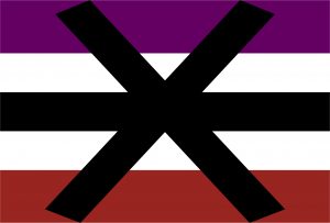 BANDERA ASEXUAL: Es la falta de atracción sexual hacia otrxs, o el bajo o nulo interés o deseo por la actividad sexual Puede ser considerada como la ausencia de orientación sexual o una de sus variaciones junto con la heterosexualidad, la homosexualidad y la bisexualidad.