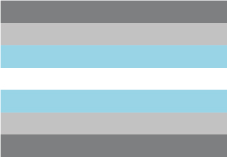 BANDERA DEMIBOY: (o demichico) es una persona cuya identidad de género es parcialmente, pero no totalmente, masculina. Se identifican en parte como un hombre, pero también con otro género o con la ausencia de género. Este término se encuentra dentro del amplio paraguas de las identidades de género no binarias.