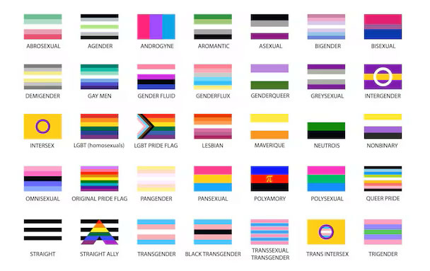 BANDERA GINESEXUAL: es alguien que siente atracción sexual o romántica por mujeres o por la feminidad. Este término se utiliza a menudo para describir una orientación sexual que se centra en las características de la feminidad, independientemente del género de la persona que siente la atracción.