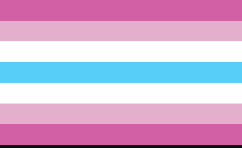 BANDERA FEMBOY: El termino se usa para describir a un hombre que se presenta con una estética y un estilo de expresión de género tradicionalmente asociados con la feminidad, como usar faldas, vestidos, maquillaje o peinados femeninos. Esta identidad se centra en la expresión de género, no necesariamente en la identidad de género o la orientación sexual.
