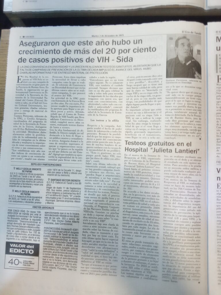 Vinculo a la nota: Tandil conmemora el Día mundial del Vih con testeos gratuitos.