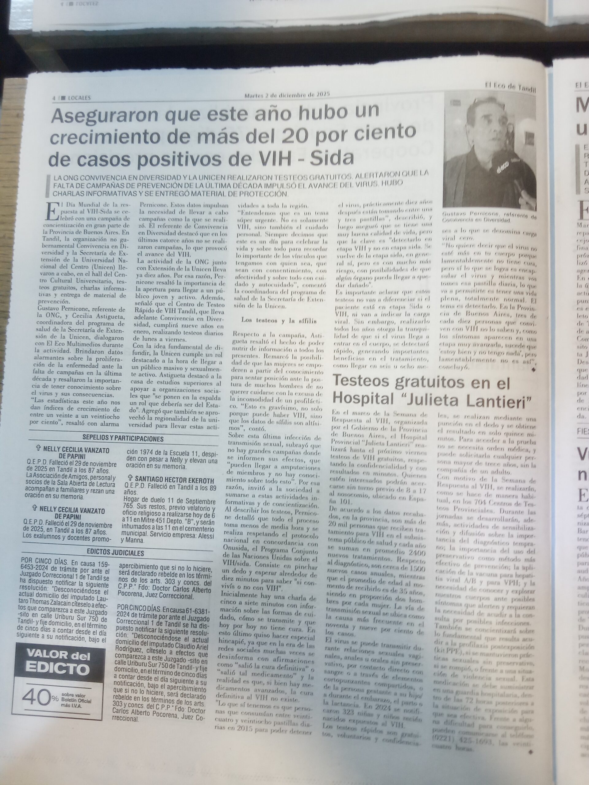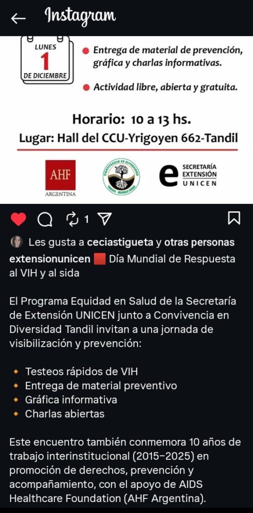 Agradecemos a los medios de prensa de la ciudad por la amplia repercusión recibida, a la secretaria de extensión de la UNICEN y por supuesto la permanente presencia y acompañamiento de AHF Argentina.