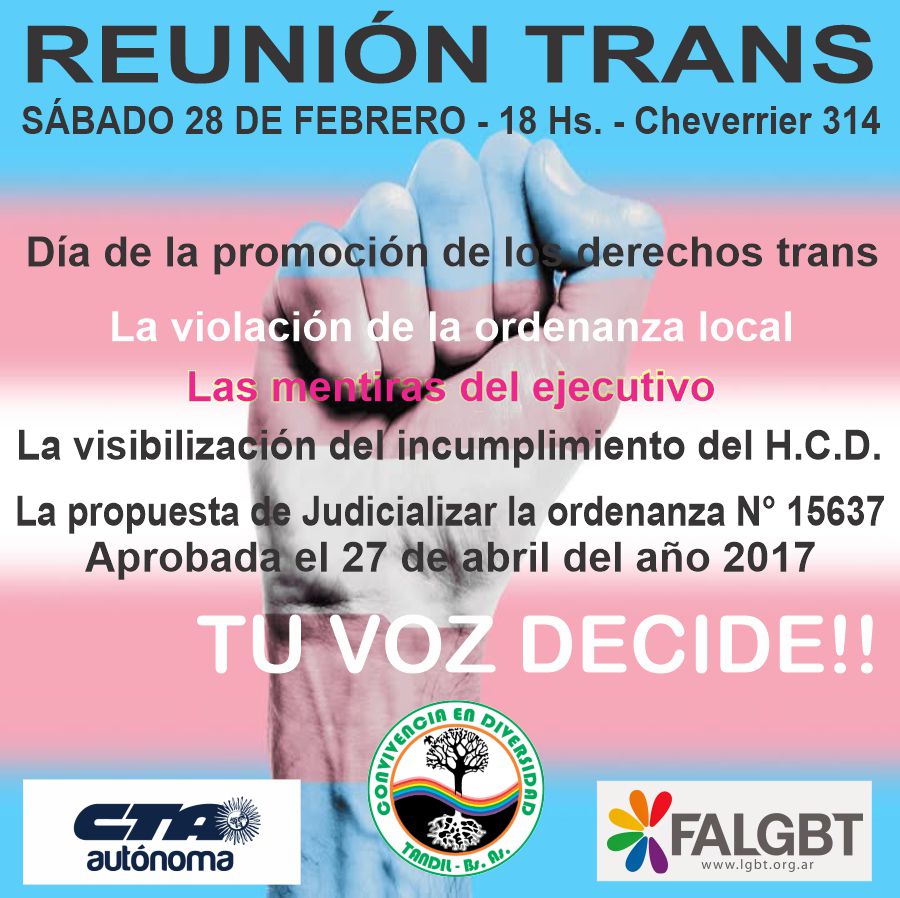 Es por esto que empezaremos este 18 de Marzo a visibilizar, reclamando en la calle, en los eventos municipales, en los medios, y si se aprueba en la actividad del 18 de marzo con las personas trans presentes la judicialización.
